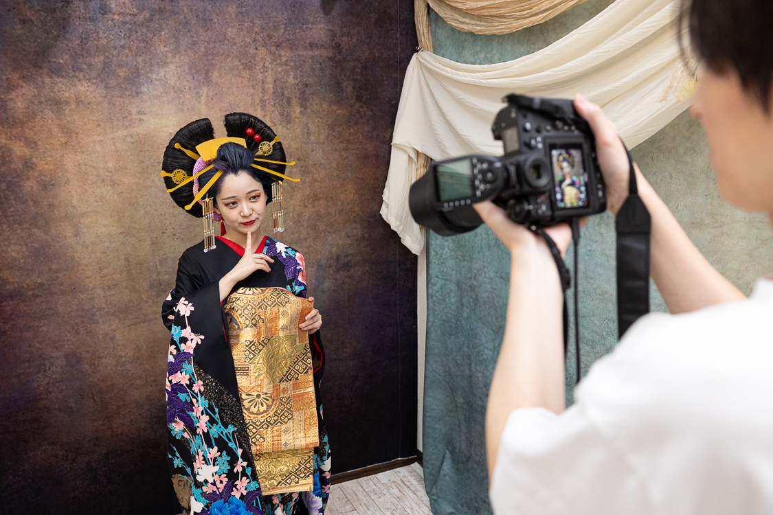 *This photoshoot will be a colorful kimono shoot that incorporates the fashion culture of courtesans, photo shoot know-how, and the background of Studio Hashiki. This is not a photoshoot for a courtesan.
