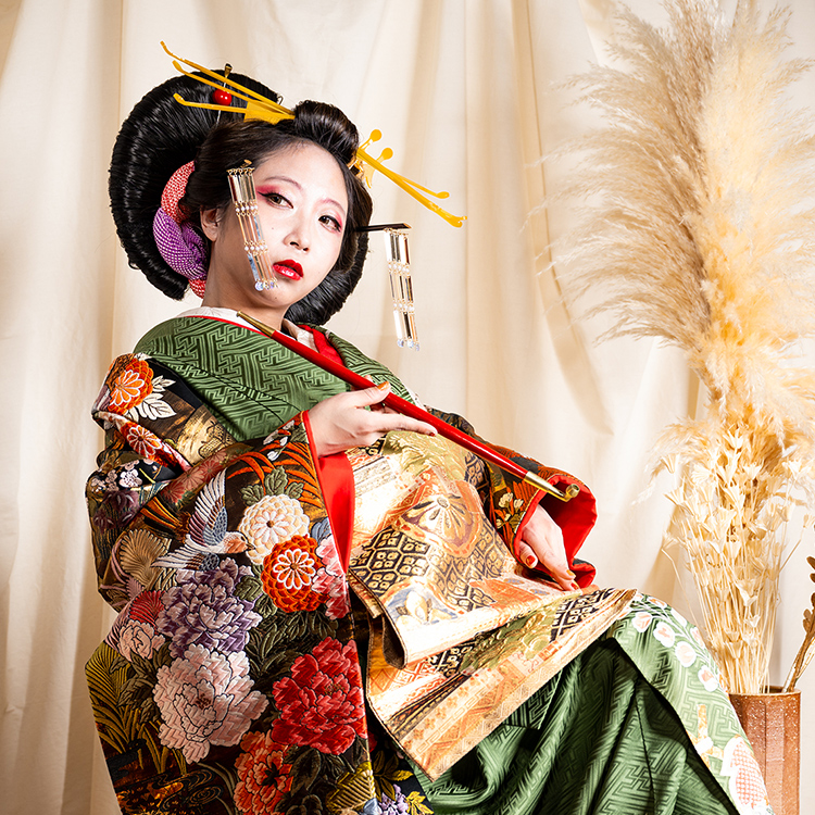 Our studio provides authentic sets and props, allowing you to immerse yourself in the prestigious world of oiran.